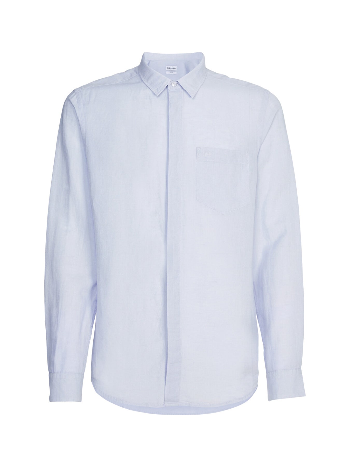 Modern. Clean. Elevated. Calvin Klein Menswear brings considered detail to classic cuts. Designed to mix and match, for the modern day-to-night wardrobe. linen cotton blend moisture-wicking, anti-odour regular fit pointed collar long sleeves concealed button fastening patch chest pocket Calvin Klein tonal monogram on the chest pocket extended sizes availableOur model is 1.86m (6ft 1in) and is wearing a size M.